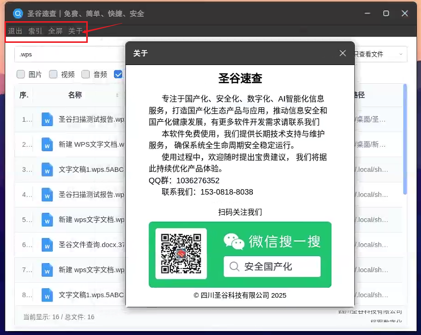 • 办公人员查找文件:输.word,可查找所有word文件,快速定位系统里的对应文件,双击即可打开文件位置,方便快捷;了解更多可以点击关于,关注微信公众号,我们提供长期技术支持与维护服务。